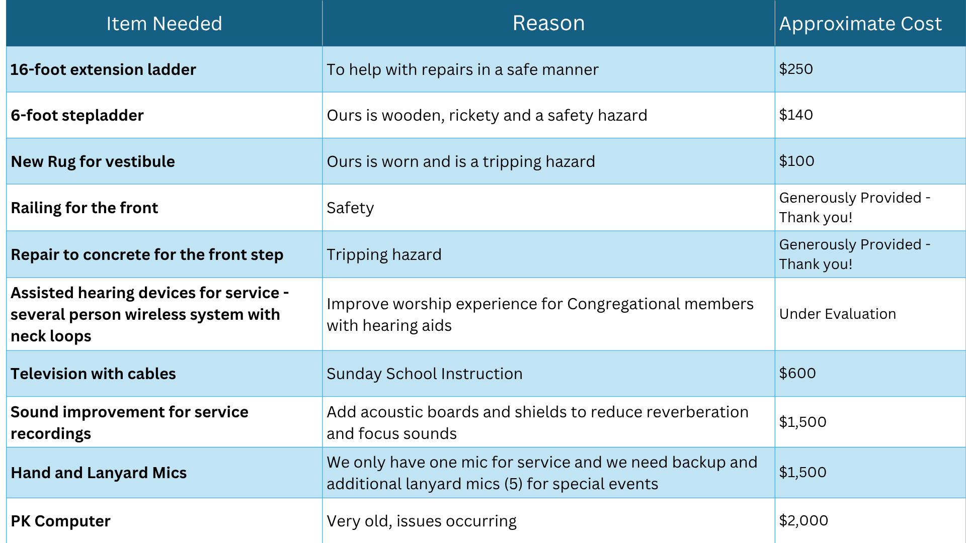 Work is being done to evaluate options for providing hearing assistance in the sanctuary.